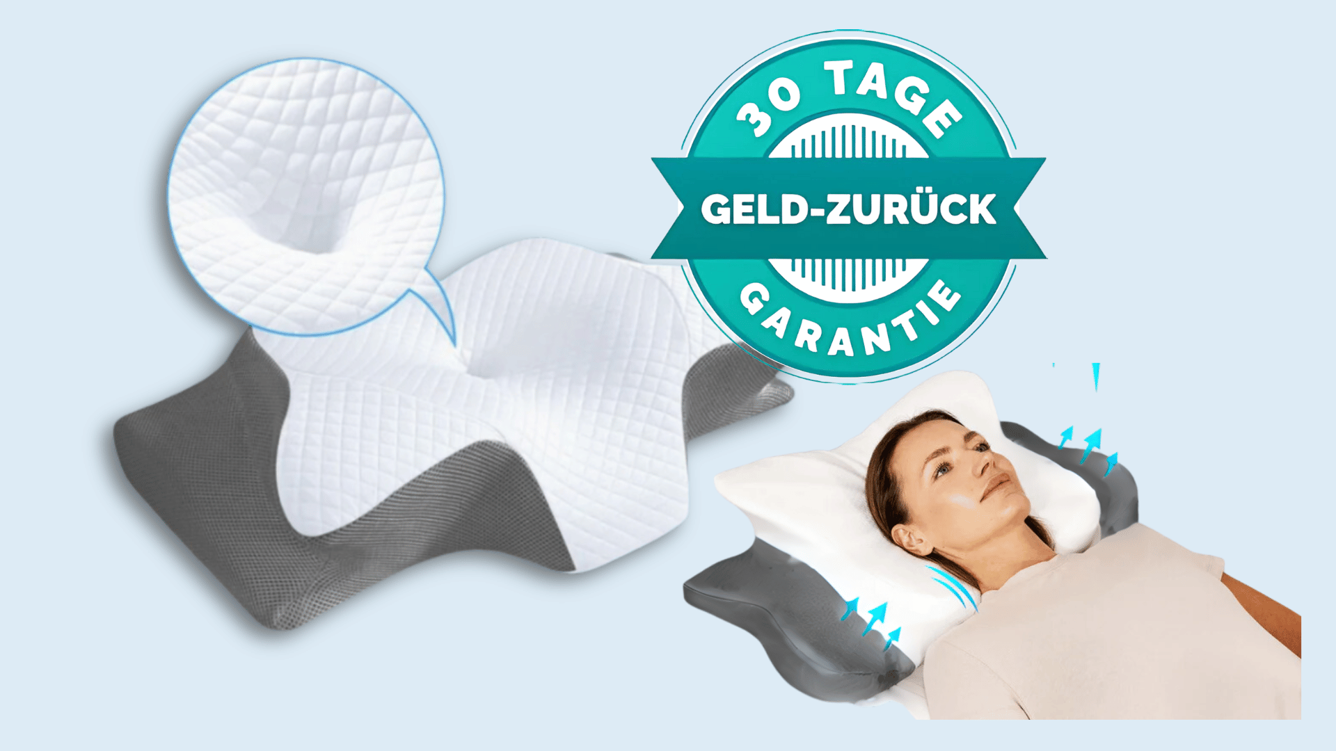 Ein Kissen, das die Halswirbelsäule anatomisch korrekt ausrichtet und diese Position die ganze Nacht über hält.